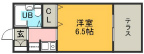 カウンターガスキッチンの1Kタイプ